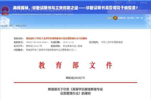 在当今职场中,诊断证明书与工资扣款之间的关系是许多员工经常面临的问题,本文将深入探讨诊断证明书是否会导致工资扣款,并为大家解析相关的法律规定,以及实际操作中的注意事项和案例。