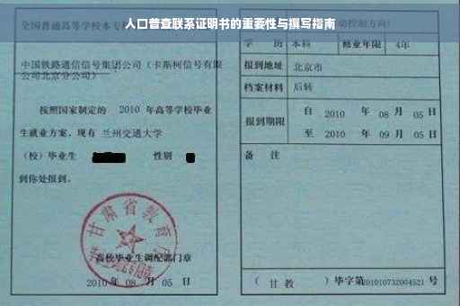 在当今社会,人口普查是国家管理和发展不可或缺的一项基础工作,而人口普查联系证明书作为这一工作中的重要环节,起到了沟通、保障数据和提升效率的关键作用,本文将围绕人口普查联系证明书展开讨论,带您深入了解这一看似简单却至关重要的文书工作。