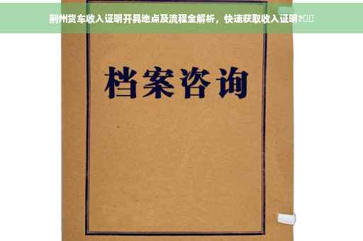 本文将详细介绍荆州货车司机获取收入证明的具体地点及流程,包括相关部门的职责、所需材料、办理步骤等,帮助司机朋友们顺利开具收入证明,解决日常生活中的实际需求。