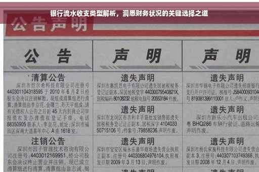 在当今社会,随着经济的发展和个人财务活动的日益频繁,银行流水成为了我们生活中不可或缺的一部分,银行流水记录着我们的收支情况,对于我们进行财务管理、预算规划以及贷款申请等方面都有着重要作用,本文将详细解析银行流水的收支类型选择,帮助你更好地洞悉自己的财务状况。
