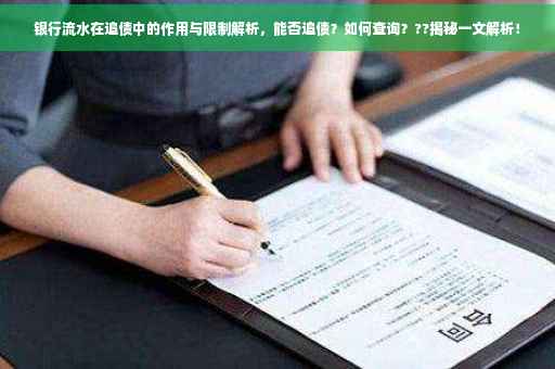 在日常生活中,我们经常会与银行账户打交道,银行流水作为记录我们每一笔资金往来的重要凭证,有时在追债过程中也被视为关键证据,银行流水真的可以用于追债吗?如果可以,又该如何操作呢?本文将详细解析银行流水在追债过程中的应用及其限制。