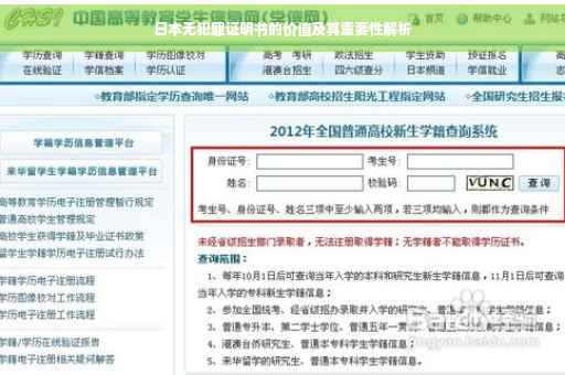 摘要:日本无犯罪证明书具有重要的价值,它是证明个人在日本期间无犯罪记录的重要文件。对于需要在日本工作或留学的人来说,这份证明书是必备的资格证明,能够证明个人的品行良好,增加信任度。它也是日本社会安全的重要保障,有助于维护社会治安和稳定。日本无犯罪证明书的中文翻译指的是将该证明书的内容翻译成中文,以便于理解和使用。