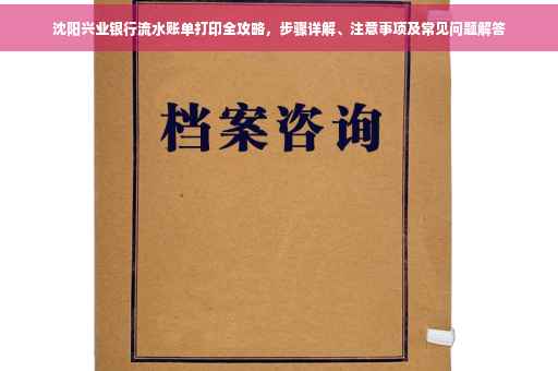 完成沈阳兴业银行流水打印的过程并不复杂,只需按照上述步骤操作即可,注意事项和常见问题解答部分也为您提供了在实际操作中可能遇到的问题及解决方案,为了确保流程的顺利进行,我们建议您提前电话咨询网点营业时间,并尽量避开高峰期前往银行办理业务,保护个人信息的安全至关重要,在提交申请时请注意个人隐私和信息安全,希望本文能为您带来帮助,如果您还有其他问题或需求,欢迎随时与我们联系,祝您办理业务顺利!