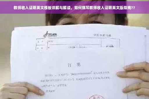 摘要:本文介绍了教师收入证明的英文模板及其详细解读,帮助教师正确撰写收入证明英文版。文章涵盖了收入证明的基本格式、必要内容以及注意事项,为教师提供了一份实用的写作指南。通过本文,教师可以轻松了解如何规范地表达自身收入情况,以满足相关需求。