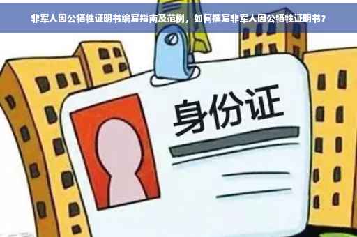 摘要:,,本文介绍了如何撰写非军人因公牺牲证明书。该证明书需明确说明牺牲者的身份、工作单位、职务、牺牲时间、地点和原因等基本信息,同时需要加盖单位公章和相关部门证明。本文提供了相关的格式和注意事项,以帮助读者正确撰写非军人因公牺牲证明书。该证明书具有法律效力,需严谨认真填写。