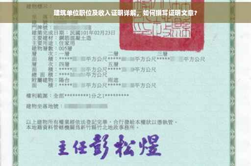 摘要:本文将详细介绍建筑单位职位及收入证明的撰写方式。内容包括如何准确描述个人在建筑单位的职位,以及如何证明个人的收入水平。文章旨在帮助读者了解如何正确、清晰地出具个人在建筑单位的职位及收入证明,以便在求职、贷款等场合提供有力的证明。