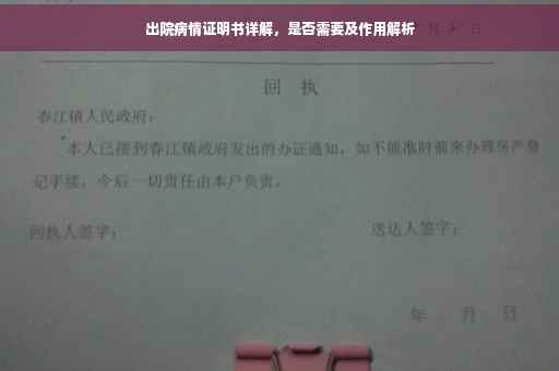 ,包括其重要性、构成部分、书写规范以及常见问题,通过本文,希望能让更多人了解出院病情证明书的作用和注意事项,以便更好地为患者提供医疗服务。