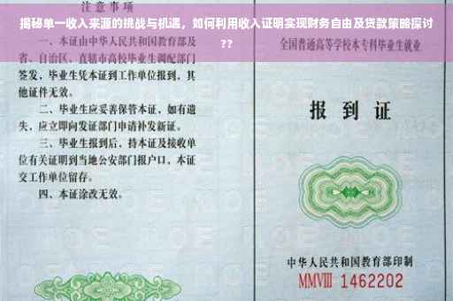在这个日新月异的时代,越来越多的人开始意识到财务自由的重要性,对于许多职场人来说,只有一份收入证明成为了他们实现财务梦想的绊脚石,面对这一挑战,我们该如何应对并寻找机遇呢?本文将为你揭示单一收入来源背后的挑战,并分享如何利用收入证明实现财务自由。