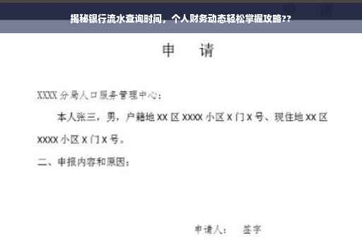 随着现代社会个人财务管理的重要性日益凸显,银行流水作为记录个人资金流动的关键载体,其查询时间成为了大众关注的焦点,本文将全面介绍银行流水的查询时间,并教您如何有效利用银行流水,助您轻松掌握个人财务动态。