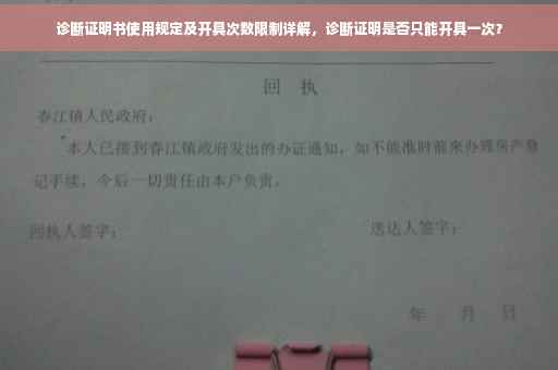 在现代社会,诊断证明书作为一种重要的医疗文件,广泛应用于各个领域,如工作、学校、保险等,它是对患者健康状况的客观证明,具有一定的法律效力,关于诊断证明书的开具次数,却存在一些疑问和困惑,本文将详细介绍诊断证明书的使用规定及其开具次数的限制,以便大家更好地了解和使用。