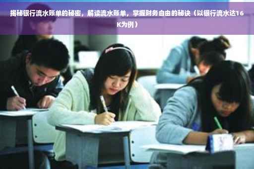 银行流水账单是了解个人或企业财务状况的重要工具,通过解读银行流水账单,掌握财务自由的关键在于合理规划和管理个人或企业的财务状况,以银行流水达16K为例,我们可以发现银行流水的秘密并不神秘,只要善于分析和规划,就能实现财务自由的目标,希望本文能对你有所帮助,让你在财务管理方面取得更大的进步。