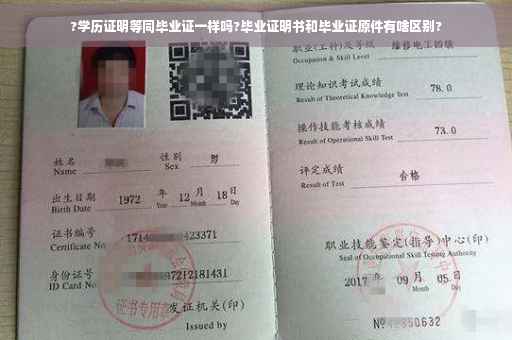两者都是证明个人学历、文化程度的纸质书面材料。但是也有很大不同。毕业证原件是指由毕业院校颁发的,受国家承认认可(或者本校承认),有一定法律效力的公文书面证明。
