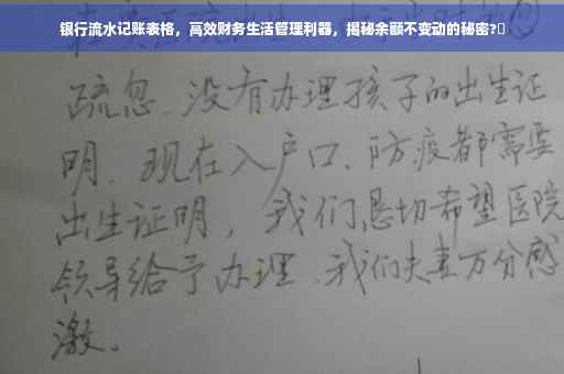 在现代社会,随着人们生活水平的提高和财务活动的日益复杂,如何有效管理个人财务成为了一个备受关注的话题,银行流水记账表格作为一种便捷、实用的财务管理工具,能够帮助我们更好地掌握自己的收支情况,实现财务自由,本文将详细介绍银行流水记账表格的创建、使用及其在日常生活中的实际应用。