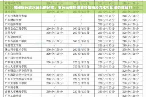 随着金融行业的迅猛进步,银行业务日益繁忙,其中银行流水作为银行业务的核心组成部分,对于个人和企业客户而言具有至关重要的地位,银行流水不仅反映了客户的经济活动情况,更是银行信贷审批的重要依据之一,支行应如何高效处理银行流水业务呢?让我们一起揭开银行流水的神秘面纱,深入了解支行处理银行流水业务的详细流程与策略。