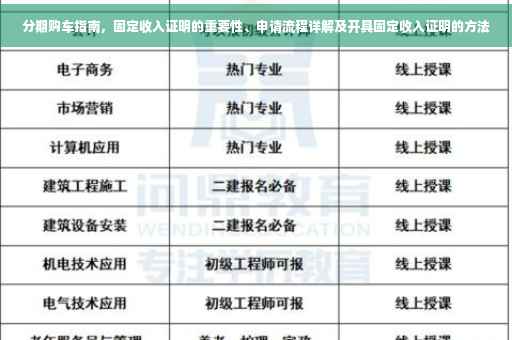 随着人们生活水平的提高,购车已成为许多家庭的刚需,对于大部分普通家庭而言,一次性支付购车款项存在困难,因此选择分期付款购车成为了主流方式,在申请分期购车时,固定收入证明是银行或其他金融机构评估借款人还款能力的重要依据,本文将详细介绍固定收入证明在分期购车中的作用、申请流程以及注意事项,帮助广大消费者顺利完成购车分期。