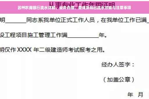 本文详细介绍了苏州农商银行流水相关业务,包括业务办理、查询方式以及注意事项,希望市民通过本文能更好地了解和使用苏州农商银行流水服务,保障个人财务安全,建议市民关注苏州农商银行官方渠道,了解更多金融服务和优惠活动信息。