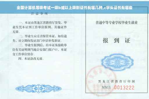 全国计算机等级考试一级b或以上级别证书有二级vb、二级c语言、二级C++、二级Java、二级WEB程序设计、二级VFP、三级PC技术、三级信息管理技术、三级数据库技术、三级网络技术等。 全国计算机等级考试(NationalComputerRankExamination,以下简称NCRE),是经原国家教育委员会(现教育部)批准,由教育部考试中心主办,面向社会,用于考查非计算机专业应试人员计算机应用知识与技能的全国性计算机水平考试体系。