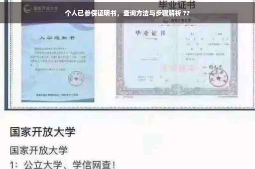 摘要:个人已参保证明书是证明个人参加社会保险的重要文件。查询个人已参保证明书,可通过登录当地社保网站、手机APP或前往社保窗口进行查询。输入个人信息,如姓名、身份证号等,即可查询个人社保缴纳情况,并打印出相应的参保证明书。这一过程方便快捷,有效保障了个人的社保权益。