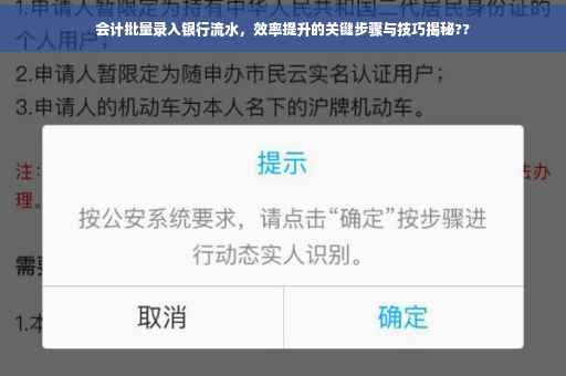 在现代化会计工作中,银行流水的处理是一项至关重要的任务,随着企业规模的扩大和交易量的增加,如何高效、准确地处理银行流水成为了一个亟待解决的问题,本文将介绍会计批量录入银行流水的方法和技巧,以提高工作效率,确保财务数据的准确性。
