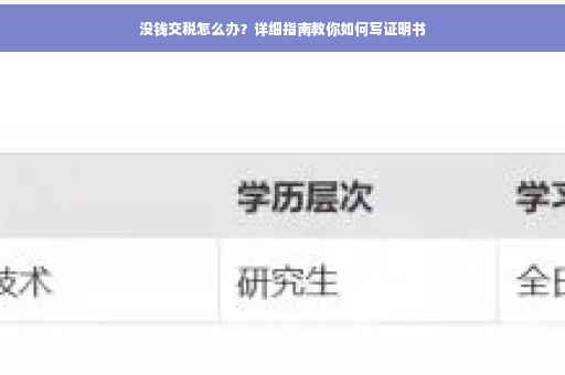 摘要:本文详细解释了如何撰写没钱交税的证明书。当面临税务缴纳困难时,可以通过撰写证明书向相关部门说明情况。文章提供步骤和要点,帮助读者完成证明书的撰写,包括说明无力缴税的原因、提供财务证明文件以及附上必要的证明文件等。通过本文的指导,读者可以更好地了解如何撰写没钱交税证明书,以解决税务缴纳难题。