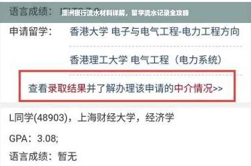 本文介绍了澳洲留学银行流水材料的详细要求,包括需要提供的材料种类、办理流程等。对于需要办理澳洲留学银行流水材料的学生,本文提供了清晰的指导,包括如何准备材料、如何填写表格等细节。也强调了银行流水在留学申请中的重要性。摘要字数控制在约150字左右。
