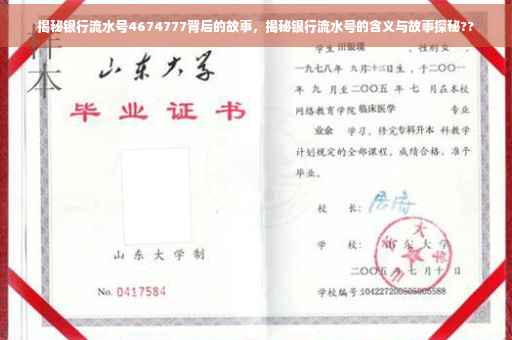 摘要:本文将揭示银行流水号4674777背后的故事,介绍银行流水号的含义和作用。通过深入了解银行流水号,读者可以更好地理解银行业务的运作,以及个人财务记录的重要性。本文还将探讨与银流水号相关的故事和案例,帮助读者更好地理解这一关键概念在实际应用中的作用。