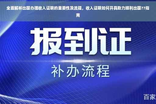 随着全球化的推进,越来越多的人选择走出国门,探索更广阔的世界,而在申请签证、办理移民或留学的过程中,收入证明成为了重要的证明材料之一,本文将全面解析出国办理收入证明的重要性,以及详细的办理流程,帮助大家顺利完成出国手续。