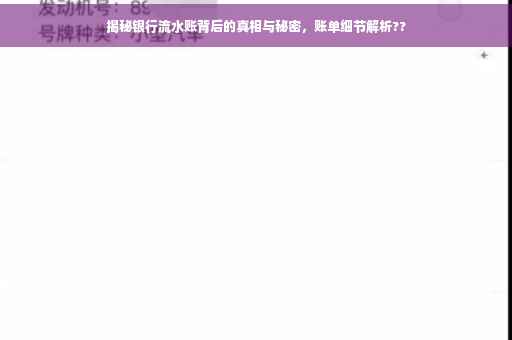 摘要:本文将揭示银行流水账背后的秘密与真相,带你深入了解银行账单的细节。通过解读银行流水账单,揭示账单中的隐藏信息,包括资金流向、消费习惯等,帮助读者更好地管理个人财务和做出明智的金融决策。阅读本文,你将更全面地了解银行流水账的重要性及其背后的秘密。