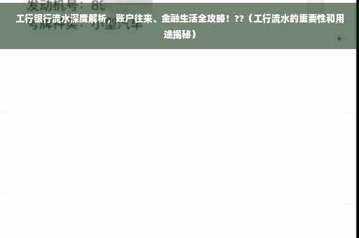 摘要:本文将为你揭秘工商银行流水的重要性及其用途。通过全方位解读账户往来与金融生活,让你了解工行流水账单的实际作用。从个人财务管理到信用评估,再到贷款申请,工行流水账单都是你金融生活的重要证明。通过本文,你将更好地利用工行流水账单,实现个人财务的精细化管理。