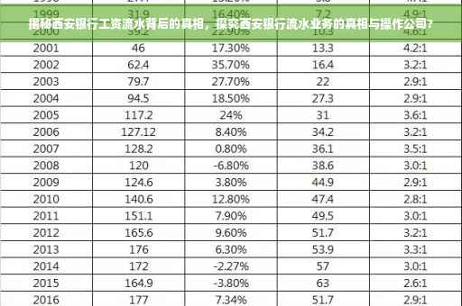 随着金融行业的繁荣,越来越多的人选择加入银行行业,在西安这座融合古老与现代的城市里,银行从业人员他们的工资背后又有怎样的故事呢?让我们一起走进他们的世界,探寻流水背后的真相。