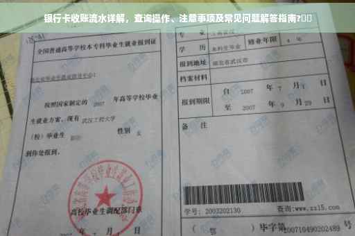 摘要:本文将详细介绍银行卡收账流水的查询方法、操作过程及注意事项。通过本文,您将了解如何查看银行卡收账流水,包括常见问题的解答。本文还将提供关于注意事项的提醒,以帮助您更好地管理个人财务。阅读本文,您将轻松掌握银行卡收账流水的相关知识。
