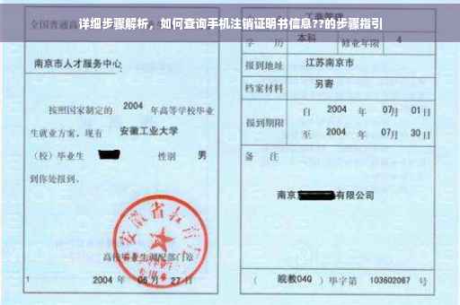 摘要:本文将详细介绍如何查询手机注销证明书。文章提供了清晰的步骤解析,包括查询流程、所需材料以及注意事项等。通过阅读本文,您将能够轻松获取手机注销证明书的相关信息,确保查询过程顺利无阻。本文旨在帮助广大用户快速准确地查询手机注销证明书信息,避免不必要的困扰。