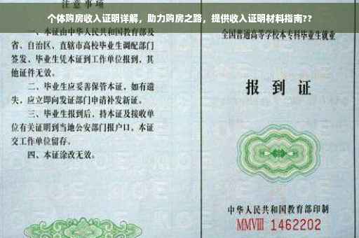 在申请购房贷款时,银行或其他金融机构会要求购房者提供收入证明,以评估其还款能力,对于个体购房者来说,理解收入证明的重要性是首要任务,重视收入证明的准备工作,是确保顺利获得贷款的关键。
