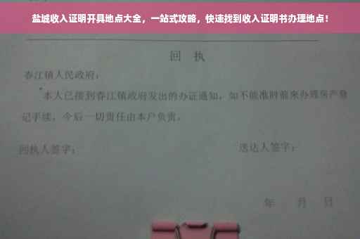 盐城收入证明开具地点全攻略。想知道盐城哪里可以开收入证明书吗?本文为您详细介绍盐城的收入证明开具地点,包括各类企事业单位、银行以及其他可能的开具机构。为您提供便捷的指南,轻松找到最近的收入证明开具地点。无论是办理贷款、信用卡还是其他金融业务,收入证明都是重要的证明材料。本文旨在帮助您快速找到开具地点,节省时间,提高效率。