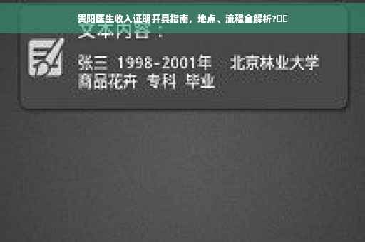 摘要:关于贵阳医生收入证明的开具地点及流程的详解,医生们可以在贵阳市各大医院的行政部门或人力资源部门开具收入证明。流程通常包括前往相关部门、提交个人身份证明和职务证明等材料,并填写申请表格。整个流程简单明了,旨在方便医生们快速获取收入证明。?⚡️。具体内容可详询当地医院相关部门。