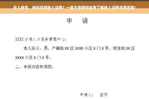 摘要:本文将介绍如何开具收入证明,特别是针对有稳定月收入的人群。文章将指导读者了解收入证明的重要性以及开具收入证明的渠道,包括向雇主索取、通过银行证明、使用税务部门出具的相关证明等方式。对于需要证明月收入的人群来说,本文将提供实用的指导和建议。