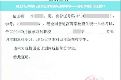 摘要:本文将介绍网上打公司银行流水的操作指南与注意事项。通过简单的步骤,您将了解如何登录网银、查询账户流水、下载并打印流水记录。本文还将提醒您注意保护账户安全,确保流水真实有效,避免泄露账户信息。阅读本文,您将轻松掌握网上打公司银行流水的技巧。