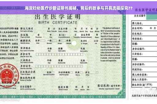 摘要:海淀妇幼医疗诊断证明书引发关注,其背后隐藏着不为人知的故事。本文将为您揭秘海淀妇幼医疗诊断证明书的开具流程,深度探究其背后的故事,带您了解这一话题的背后真相。