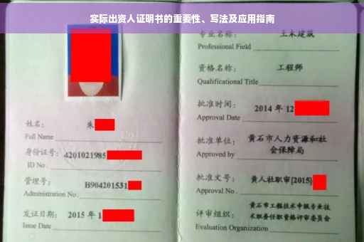 随着市场经济的发展,投资行为愈发普遍,实际出资人证明书作为投资行为的凭证,其重要性逐渐凸显,本文将全面介绍实际出资人证明书的作用、内容构成、法律效力及应用场景,以帮助读者更好地了解和使用这一关键文书。