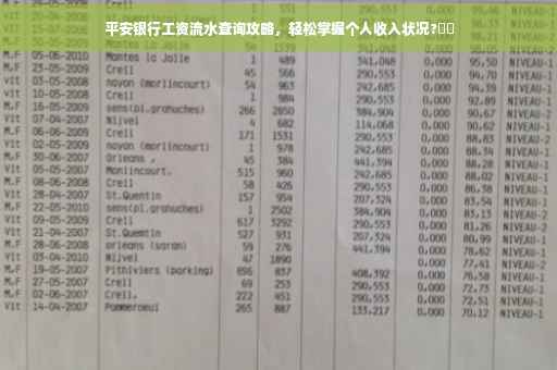摘要:想要轻松掌握个人收入状况,平安银行查工资流水服务是您的不二选择。查询流程简便快捷,您只需登录平安银行网上银行或手机银行,进入个人账户,即可查看工资流水明细。随时了解个人收入情况,让您财务规划更加得心应手。