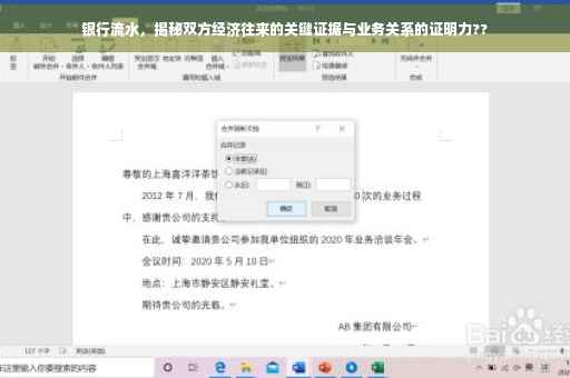 1. 在商务合作中,银行流水可作为证明双方合作情况的关键证据,确保双方按照合同约定履行经济义务。