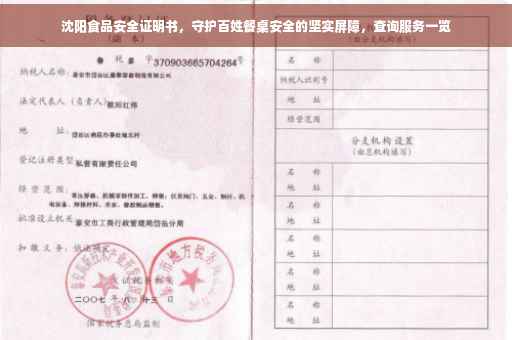 近年来,随着人们对食品安全的关注度不断提高,各地政府也纷纷加强了对食品产业的监管力度,沈阳作为东北地区的重要城市,一直以来都将食品安全作为重要的民生工程来抓,沈阳食品安全证明书,正是这座城市守护百姓餐桌安全的一道坚实屏障。