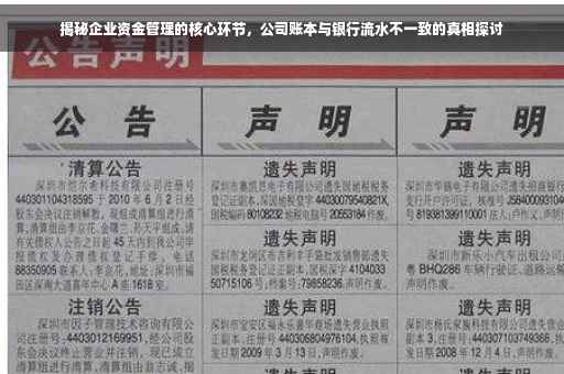 摘要:企业资金管理的核心环节涉及到公司账本与银行流水的对比和管理。有时会出现公司账本与银行流水不一致的情况,这揭示了企业资金管理中存在的问题和风险。为了解决这一问题,企业需要加强内部控制,确保账目的准确性和完整性,同时加强与银行的沟通协作,确保资金流动的透明度和安全性。