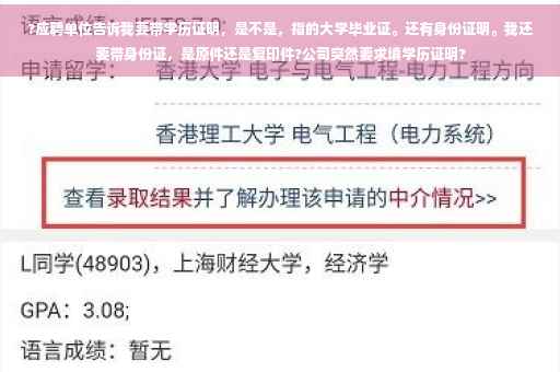 应聘单位要求带上这些材料,是要做什么用的,自己要先清楚,如果没有特别需要,有时不一定要急着给,特别是原件,最好不能留置在单位那边,原件要随身保管。至于复印件,网上有复印件上写上一些“仅作……用途”的提示内容,建议搜索了解一下。