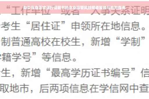在当今竞争激烈的市场环境下,企业运营中设备的正常运行是保障生产顺利进行的关键因素之一,在实际操作中,许多企业因各种原因可能缺少设备正常运行证明书,从而面临潜在的风险,本文将探讨设备正常运行证明书的重要性,分析缺少该证明书可能带来的风险,并提出应对策略,以帮助企业更好地规避运营风险。