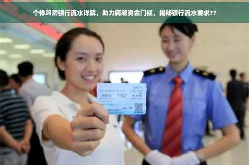 摘要:个体购房者在面对银行流水要求时,需了解相关细节以确保顺利购房。银行流水要求包括提供一定期限内的银行交易记录,以证明购房者的收入稳定性和还款能力。本文详细解析个体买房银行流水要求,助力购房者顺利跨越资金门槛,轻松购房。