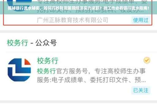 摘要:本文将揭示银行流水背后的秘密,并介绍在找工作时如何巧妙利用银行流水展现个人经济实力。通过查看银行流水,雇主可以了解求职者的收入状况、消费习惯及财务管理能力。本文将指导读者理解如何利用银行流水,在求职过程中展现稳定的经济状况,提高求职成功率。