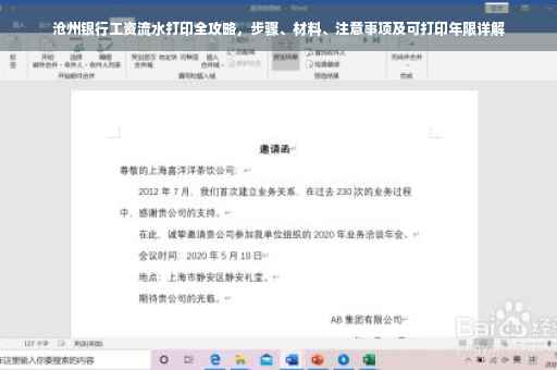摘要:本文将详细介绍沧州银行打印工资流水的全攻略,包括步骤、所需材料和注意事项。读者将了解沧州银行流水可打印的时间范围,以及如何高效、准确地获取工资流水。本文旨在帮助公众更好地管理个人财务,了解银行服务流程。