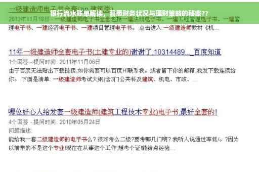 在当今社会,随着经济的发展和个人财富的积累,越来越多的人开始关注自己的财务状况,银行流水账单作为记录个人经济活动的重要载体,对于理财规划至关重要,本文将围绕银行流水账单图展开,帮助你解读财务状况,制定合理理财策略。