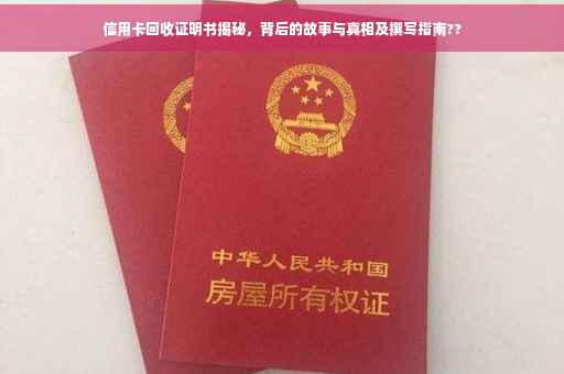 在当今社会,信用卡已成为人们日常生活中不可或缺的一部分,随着信用卡的普及,信用卡回收证明书也逐渐进入人们的视野,究竟什么是信用卡回收证明书?它的背后隐藏着怎样的故事与真相?本文将为您深入剖析,带您了解这一文件的重要性及作用。